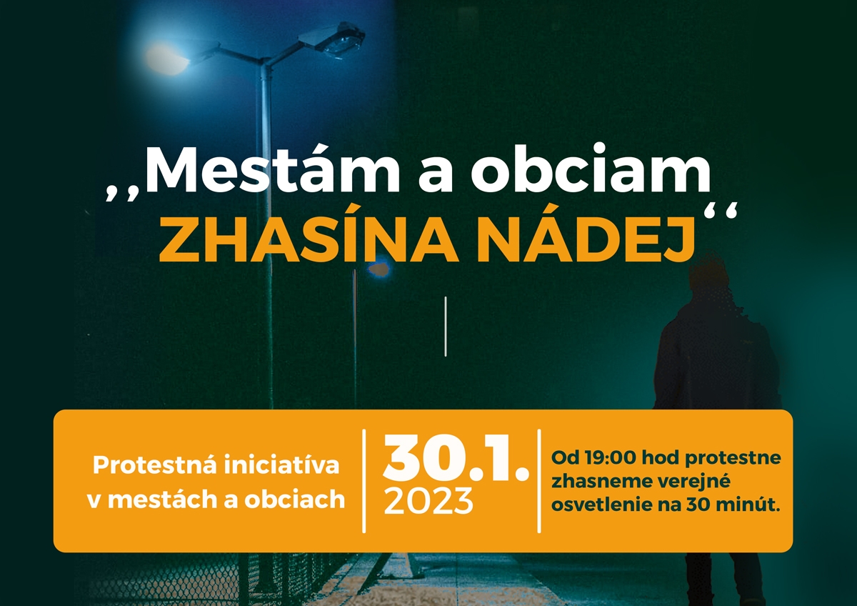 Dnes 30. januára 2023 (pondelok) bude od 19:00 do 19:30 vypnuté verejné osvetlenie na znak protestu.