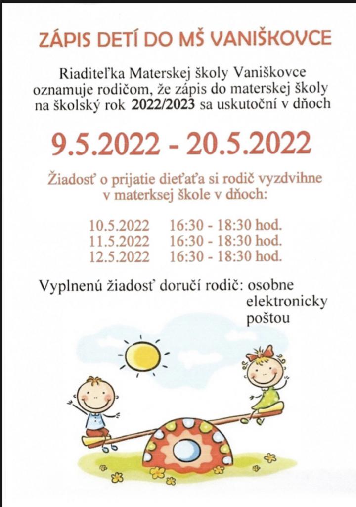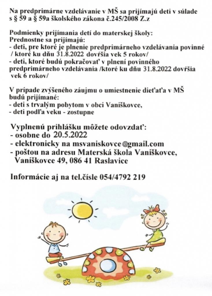 ZÁPIS DETÍ DO MATERSKEJ ŠKOLY